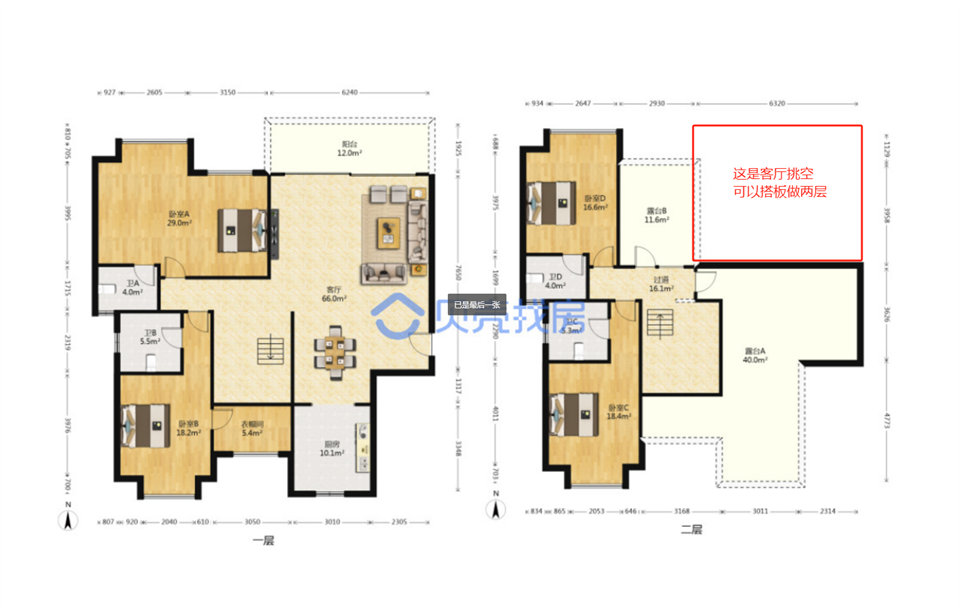 房子搭板之后可以做七房兩廳四衛(wèi),雙湖景陽臺,雙露臺。