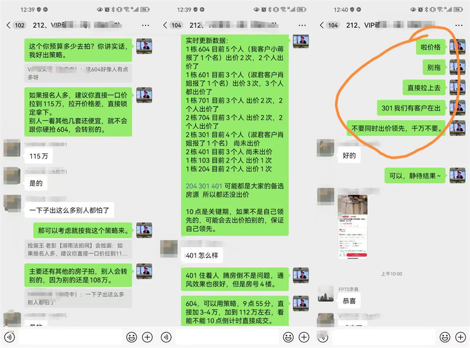 針對這8套房我們寫了好長的競拍策略,最終的核心就是一點就是:“多套房同時拍賣的時候,一定先把一套房的價格直接拉上去,一口價多拉幾萬,造成價格差,讓別人去覺得其他幾套還便宜,去搶其他的,就會放棄這套價格上去的”,而拍到最后的反而會最貴,因為沒貨搶了,都集中去搶最后一套了。