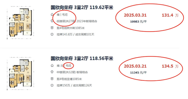 25年3月底同戶型二手房毛坯都是賣130多萬,帶裝修才112萬,說撿漏30萬沒有任何毛病,我們絕對不高估撿漏價格,參考最近真實成交的來。