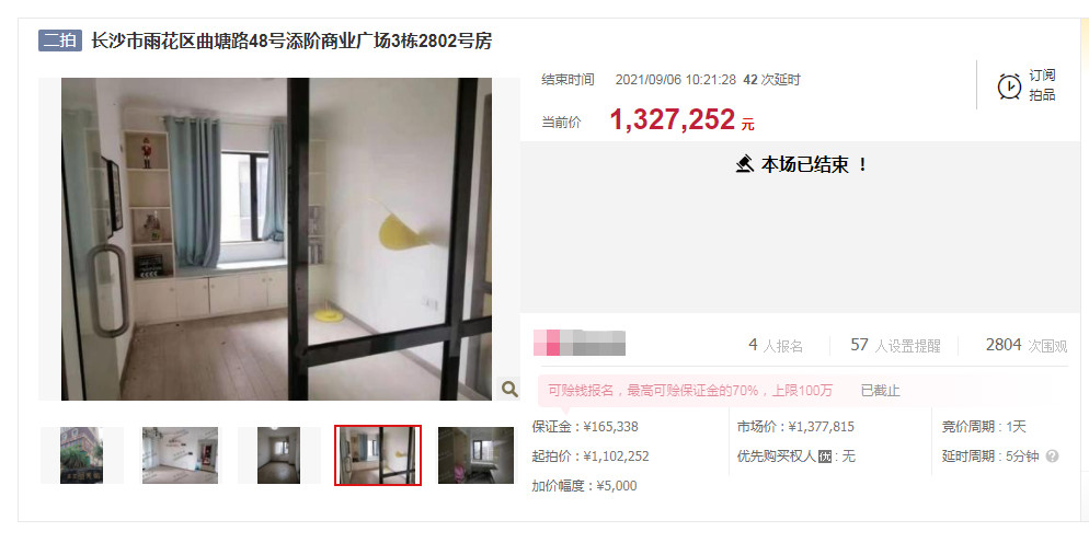 在湖南法拍網法拍房地產經紀有限公司的輔助競拍下,龔叔拍了套長沙五江天街的精裝修法拍房,不僅沒坑,還撿漏了十幾萬,恭喜恭喜。