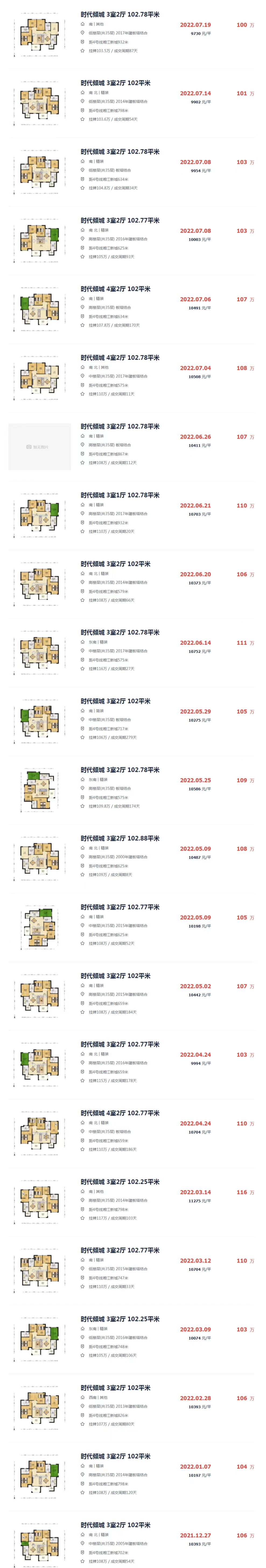 同戶型二手房低樓層都要100萬,高樓層甚至賣到了116萬,見貝殼二手房成交(圖3)。
