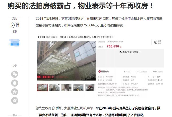 c、存在不合法租約,這種情況可以直接去法院上訴,法院會(huì)維護(hù)買受人的權(quán)益,判決租戶搬離出去的,但其操作時(shí)間可能會(huì)長達(dá)1-2年。