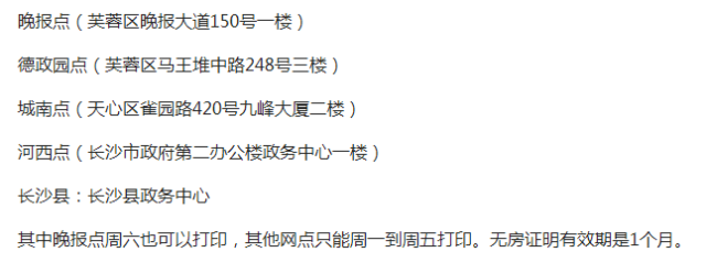 目前,長沙全市無房證明打印共5個網(wǎng)點: