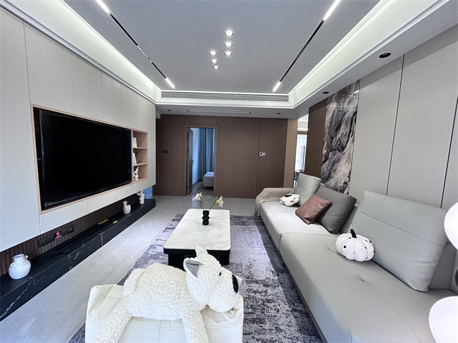 全屋私人高端定制,品質看得見:兔寶寶ENF級衣柜(藍光筆可測真?zhèn)危?、客廳美的中央空調,廚房美的三件套、美的雙開門大冰箱、小天鵝滾筒洗衣機、樂視70寸大電視、真皮沙發(fā)、4人位輕奢餐桌、滿墻電視柜背景、4米巖板超長地臺、1米5廣東大磚,浴室智能鏡、衛(wèi)生間干濕分離、陽臺專用洗曬區(qū),電動晾衣架,全屋窗簾,智能馬桶等等等等。